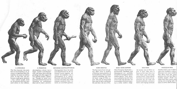 The now refuted evolutionary progression allegedly showing evolution from ape to human. From Wikimedia Commons.